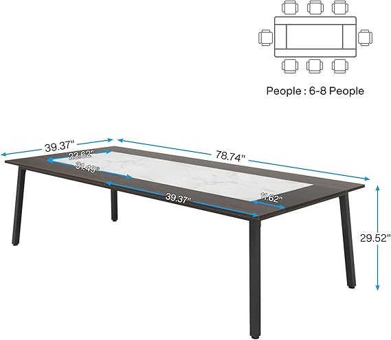 • Spacious & Stylish: 78.74" D x 39.37" W x 29.53" H, seats 6-8 people with an elegant brown maple & Calacatta white spliced design.