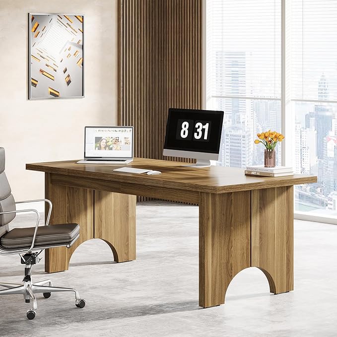 The 63-inch executive desk offers a spacious, clutter-free workspace with durable double wooden pedestals and a thick MDF desktop. Its versatile design suits offices, conference rooms, or dining areas, while the sleek wood grain finish adds sophistication. Easy to assemble with clear instructions for a hassle-free setup.
